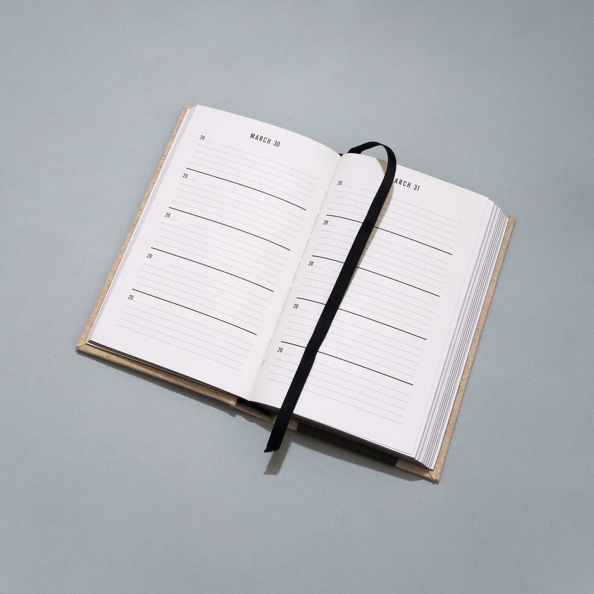 The One Line a Day memory book features a rich oatmeal-colored, canvas cloth case, striking metallic page edges, and a ribbon page marker. Each page features space to jot down an idea or daily highlight on the same date over five years, allowing journalers to look back on years past as they capture the present. A handsome way to record and reflect, this five-year diary will make an excellent gift for graduates, adventurers, dreamers, and anyone embarking on a new phase of life.