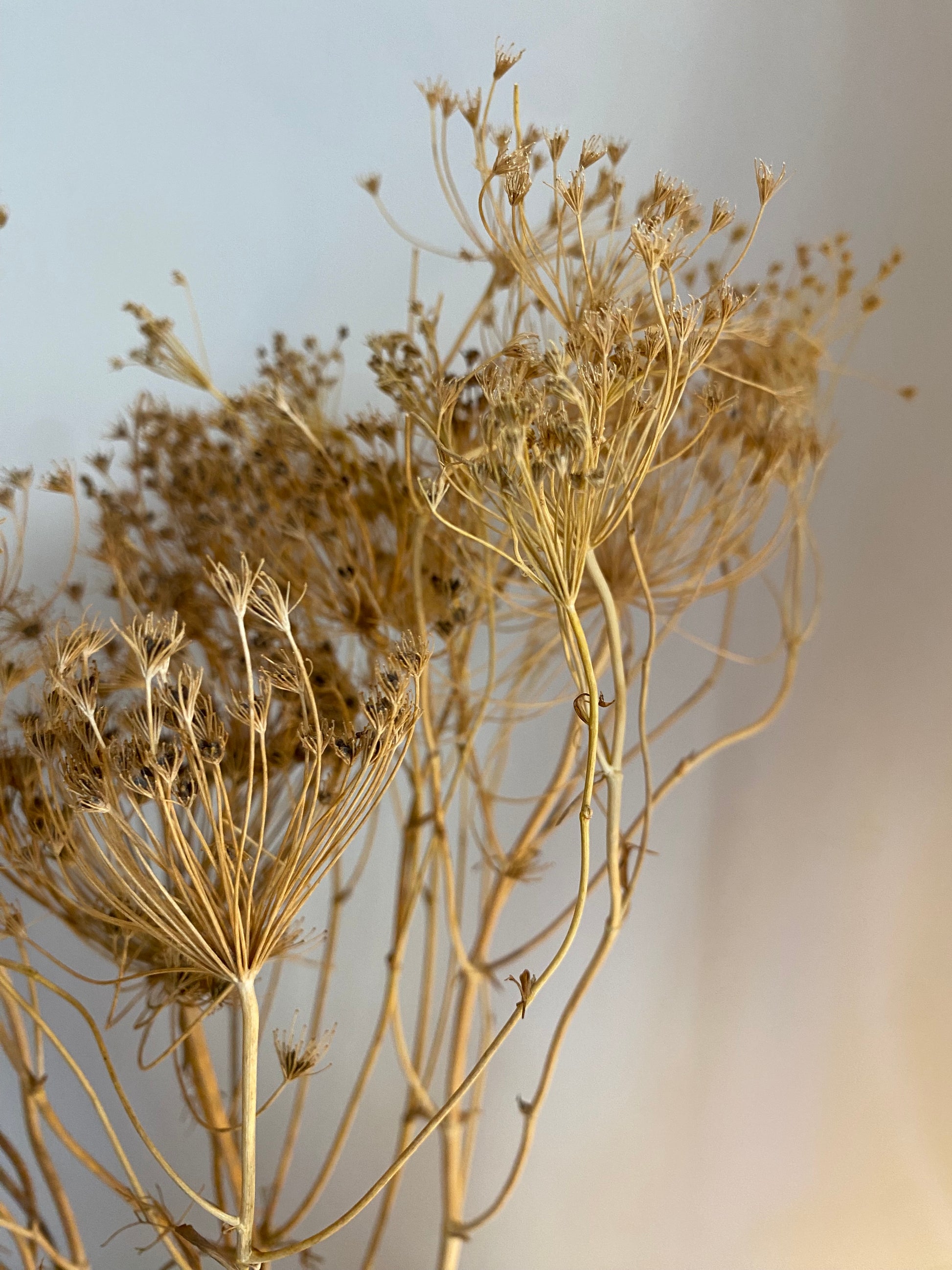 Delicate Natural Dried Bupleurum Seed Heads with fine, branching structures. Perfect for creating natural, rustic floral displays and vase arrangements. Adds light, airy texture to any design.